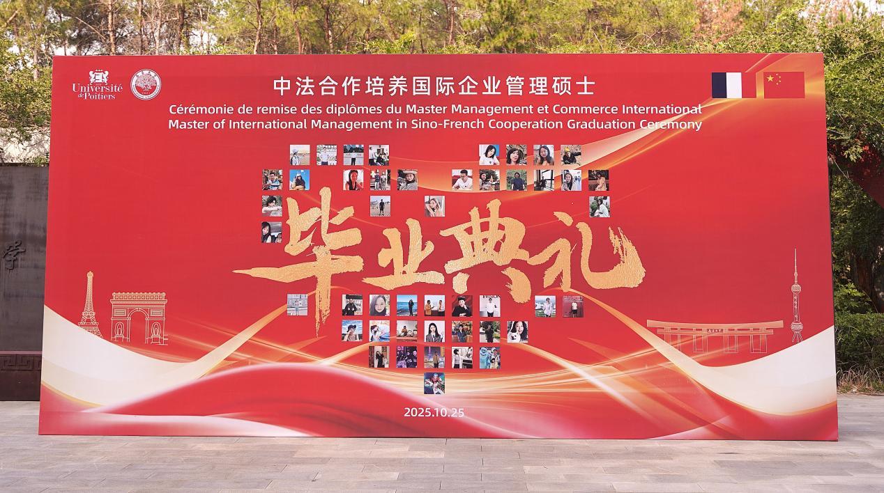 本网讯(经济管理学院)近日,南昌大学与法国普瓦提埃大学合作培养的2025届国际企业管理硕士研究生毕业典礼暨学位授予仪式在智华经管楼举行。法国驻武汉总领事乐朗儒(Julien LE LAN),我校副校长王立,法国普瓦提埃大学企业管理学院前院长、法方项目负责人伊威莉娜·朗德(Evelyne LANDE)教授先后致辞。