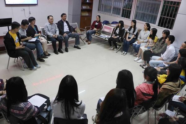 5月19日晚,机关第三党支部党员再与外语学院翻译141班全体同学座谈交流。支部党员同志以与同学们拉家常的方式,了解学生在思考什么?关心什么?回答了同学们提出的如何做好人生职业规划?如何对待西方外文媒体对我国的歪曲报道等问题,引导青年大学生坚定中国特色社会主义道路自信、理论自信和制度自信,努力将个人梦融入到中国梦中,在中华民族伟大复兴进程中贡献智慧与才华。