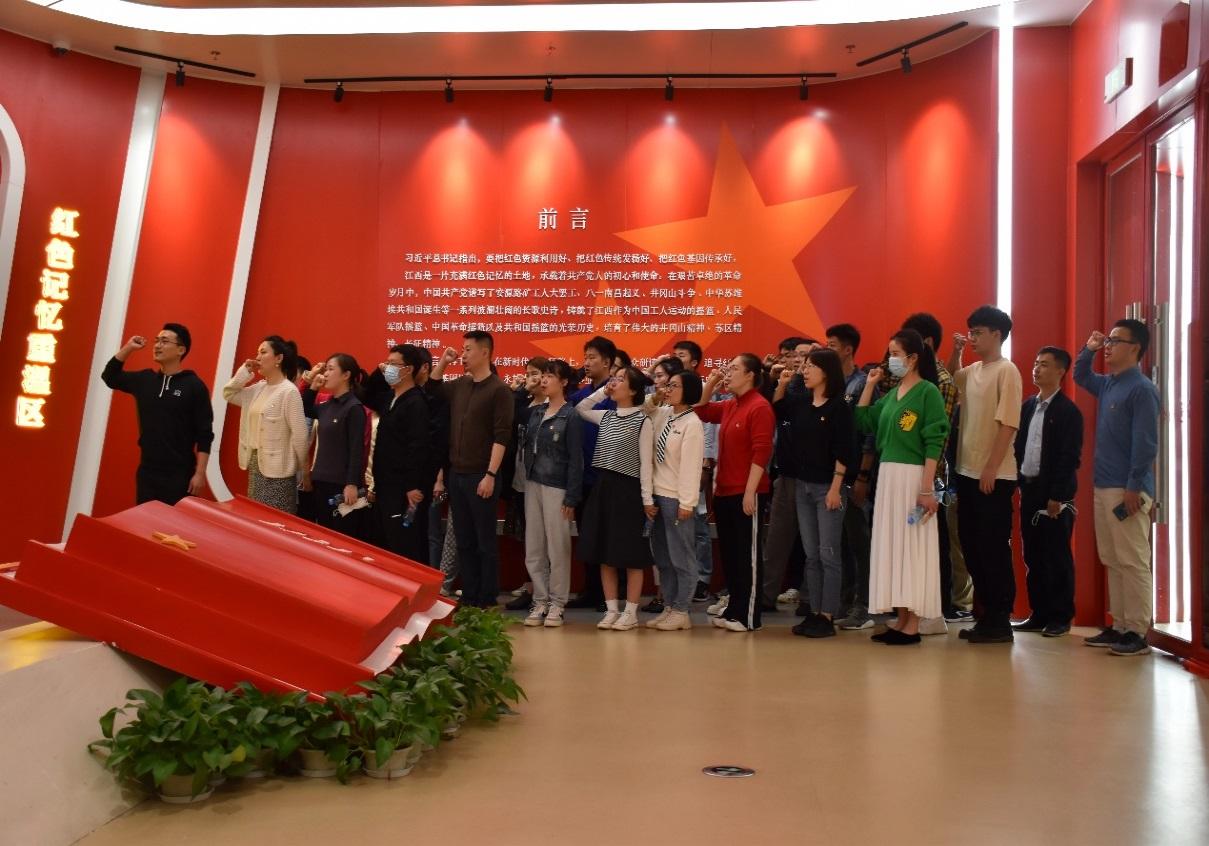 本网讯(团委)重温入党誓词、学唱嘹亮红歌、观看党史电影。4月22日下午,我校组织全体团干赴江西省图书馆开展党史学习教育。