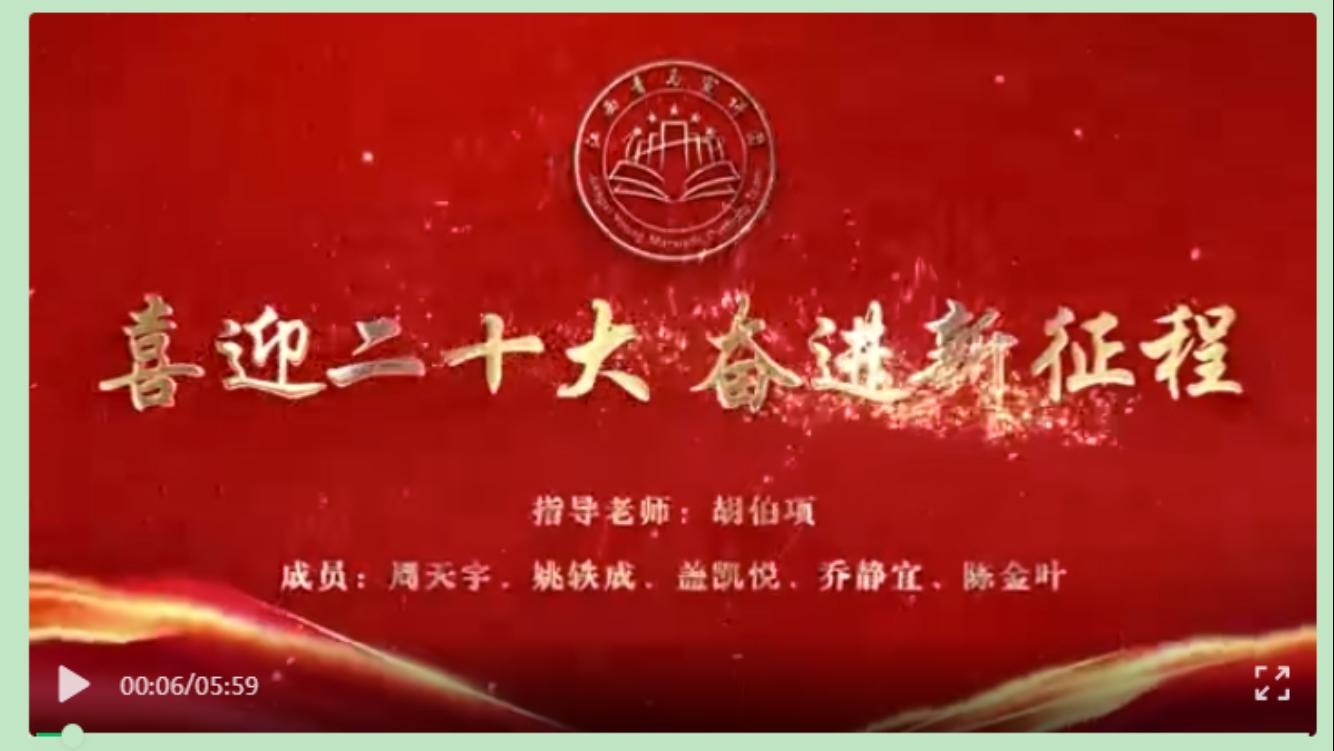 为迎接党的二十大胜利召开,不断擦亮“青马工程”品牌,充分激发青年学生发挥自身优势,积极投身到宣传宣讲习近平新时代中国特色社会主义思想和中央、省委重大决策部署中,省社联向五个青马宣讲团征集“喜迎二十大奋进新征程”主题宣讲短视频。我校积极参与征集活动,报送的视频作品《一页纸笺见初心》在省社联平台展播。