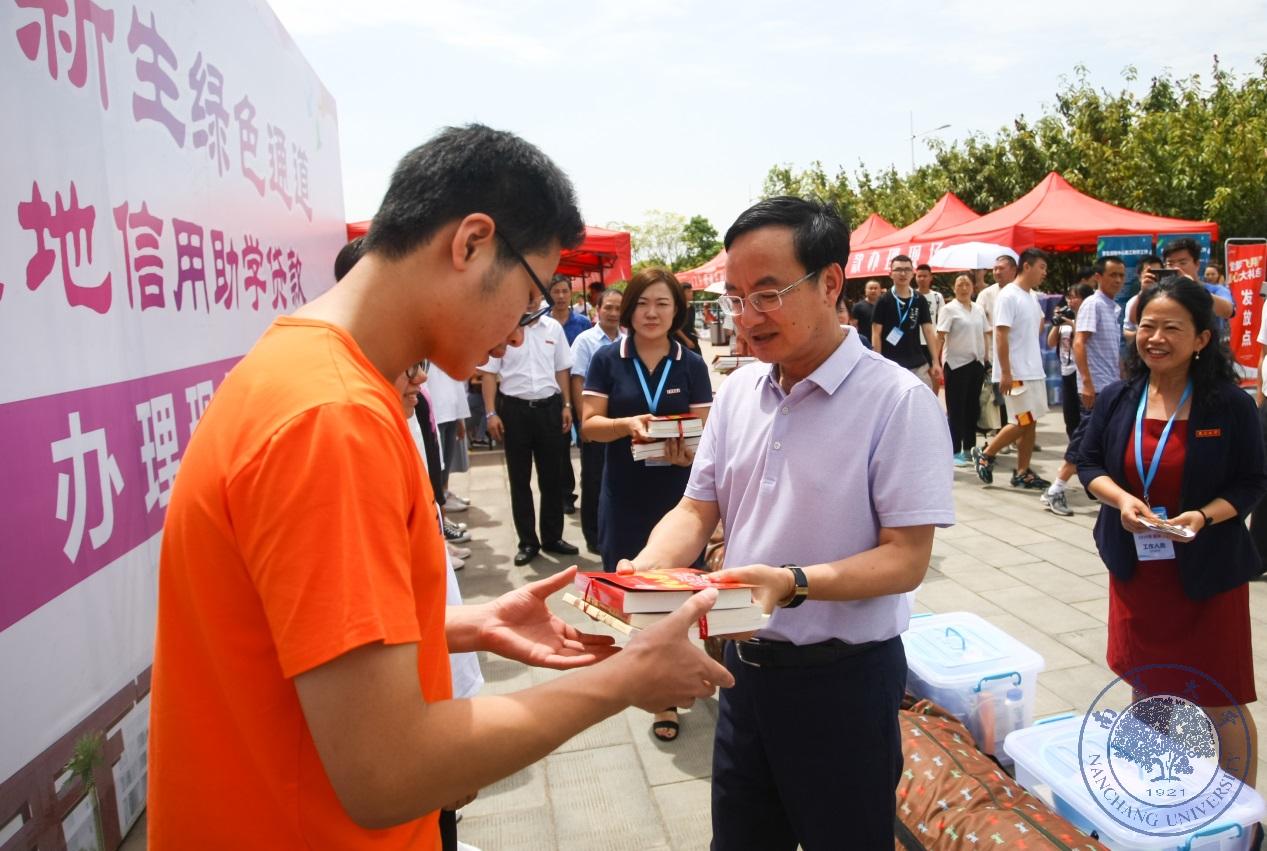 针对贫困新生,学校专门在多处集中报到点开通了“绿色通道”,并为所有建档立卡的贫困家庭学生发放生活、学习用品在内的“助梦飞翔”爱心礼包。迎新期间,校党委书记喻晓社、校长周创兵等校领导深入迎新一线查看,了解新生报到进展,为贫困学子代表送上“爱心礼包”,并深入学生宿舍慰问部分新生。此外,学校还开展“圆梦南大”资助活动,对10名瑞金籍家庭经济困难新生,实行学费缓交入校,并在取得学籍后进行相应学费减免。