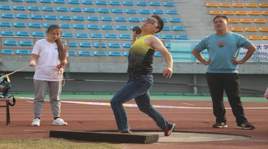 虽小却沉的铅球,在运动员“力拔山兮气盖世”的气势下,化作一道道漂亮的弧线划破天际。每一次的投掷,都靠信念来驱动;每一次的落地,都是汗水的花朵。