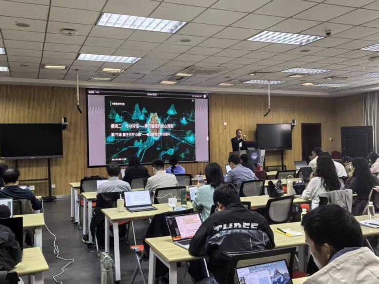 本网讯(教务处、智能技术与教育应用研究中心)一系列面向非IT专业老师的AI课程已在慧源楼拉开帷幕。本学期伊始的每个周末,来自公管、生命等学院的年轻老师们齐聚202B教室,进行“不写一行代码的软件开发”课程学习。他们中既有承担教学任务老师,也有带着科研任务与疑问前来的研究员、博士。课程旨在让这些毫无编程基础的,带着特殊任务的学生们,掌握通过与AI“对话”,指挥其开发程序、处理专业数据的能力。食品学院王君巧老师感慨:“这门课打开了一扇窗,让我们能够独立开发适合不同专业科研需求的海量数据处理程序,效率今非昔比。”