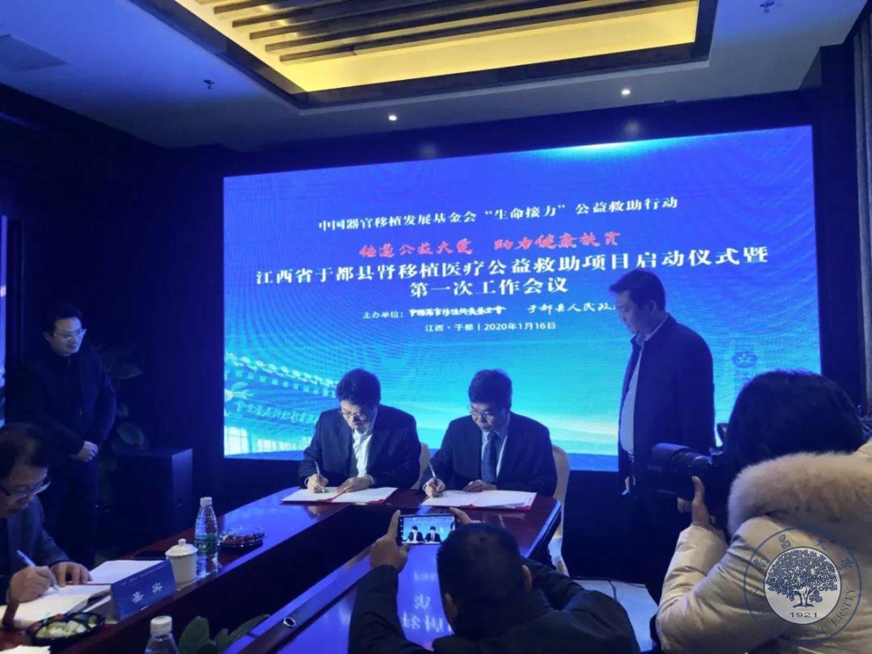 本网讯(第一附属医院)1月16日,由中国器官移植发展基金会发起的“生命接力”公益救助行动——肾移植医疗公益救助项目启动仪式暨第一次工作会议在于都县召开。会上,中国器官移植发展基金会与于都县人民政府、南大一附院分别签署了备忘录及合作协议。