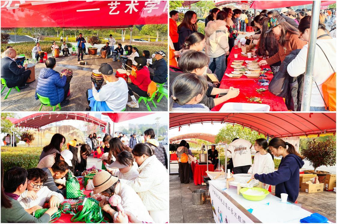 挥毫泼墨,在挂历扇面上写下祝福;妙手生花,在香囊制作中净化心灵;随着鼓点跃动,来一场音乐的疗愈;汲取大自然的养分,品一杯铁皮石斛,喝一碗古法现磨豆浆……在欣赏和体验的过程中,思政之花在心中悄然生根。