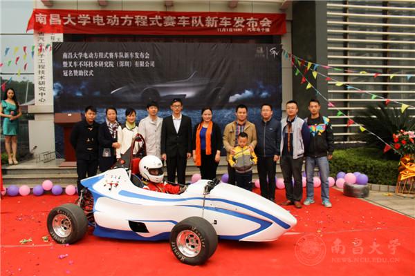 本网讯(学生记者刘思婕、张觐娇)11月1日下午,南昌大学电动方程式赛车队新车发布会暨冠名仪式在学校汽车电子楼举行,活动展示了即将在2016届FSEC上海赛中代表学校出征的最新型电动方程式赛车,吸引了来自校内外众多赛车爱好者参与。