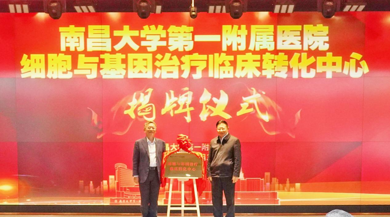 会上,黄晓军与罗嗣海共同为“南昌大学第一附属医院细胞与基因治疗临床转化中心”揭牌。此次揭牌标志着第一附属医院在细胞与基因治疗领域迈入了新的发展阶段。