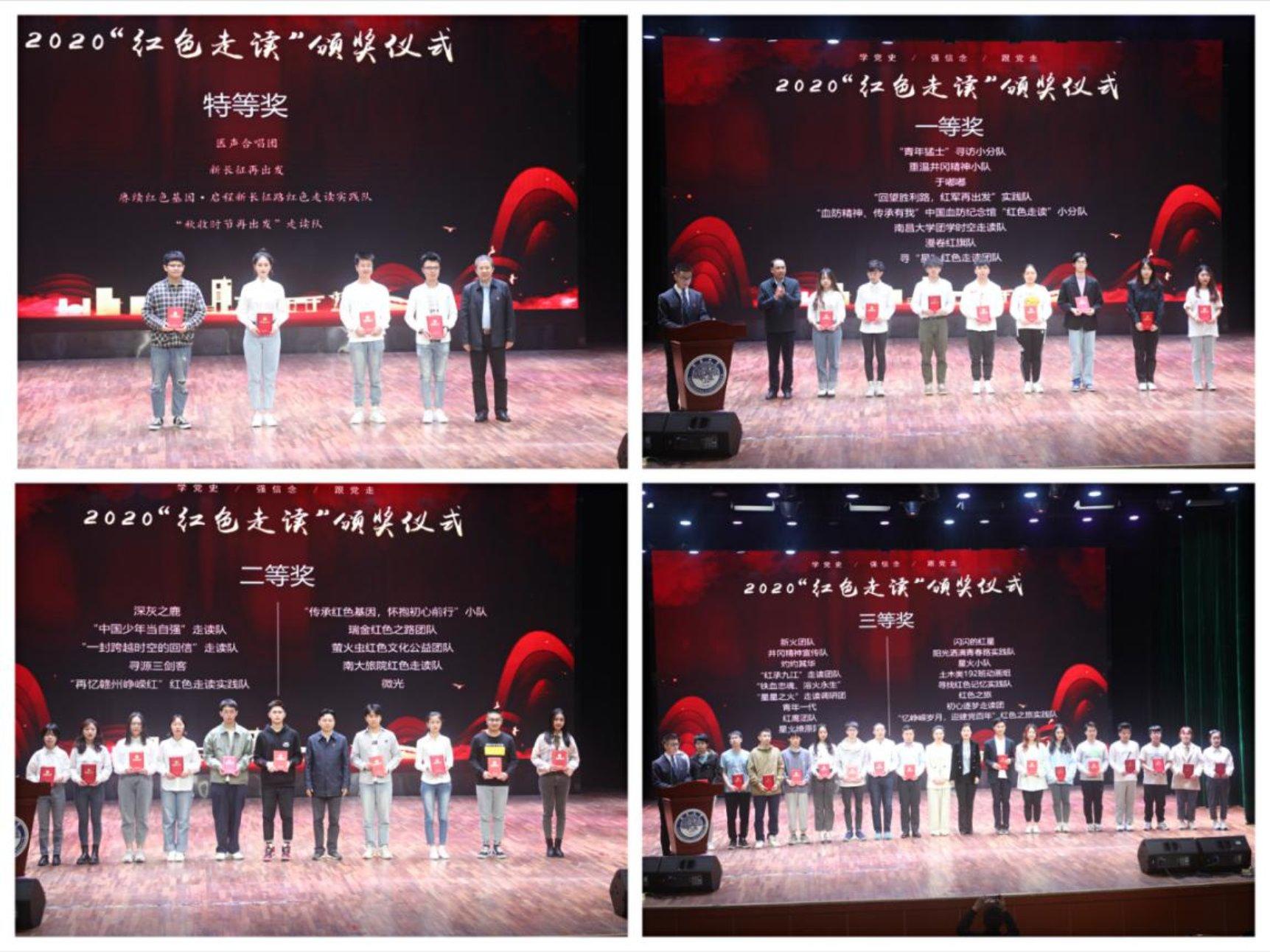 活动还举行了2020年红色走读获奖团队和单位颁奖仪式。5个单位获优秀组织奖、4个团队获特等奖、8个团队获一等奖、10个团队获二等奖、17个团队获三等奖。