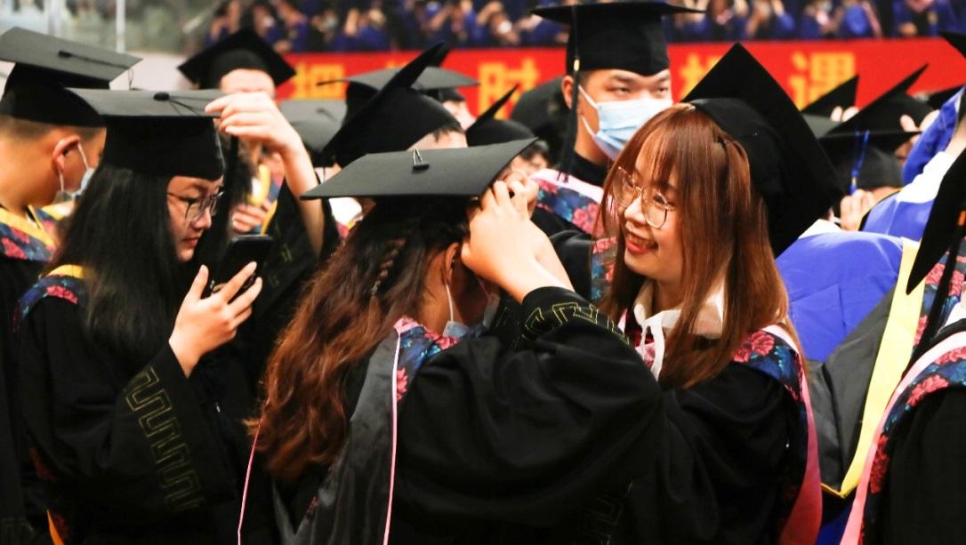少年成人,风华正茂。历经几年寒暑,徜徉知识的海洋,汲取精神的养分,而今学有所成,终于穿上心仪的学位服。在拨穗礼前,毕业生们为彼此正衣冠,少年整装再出发,各自精彩。