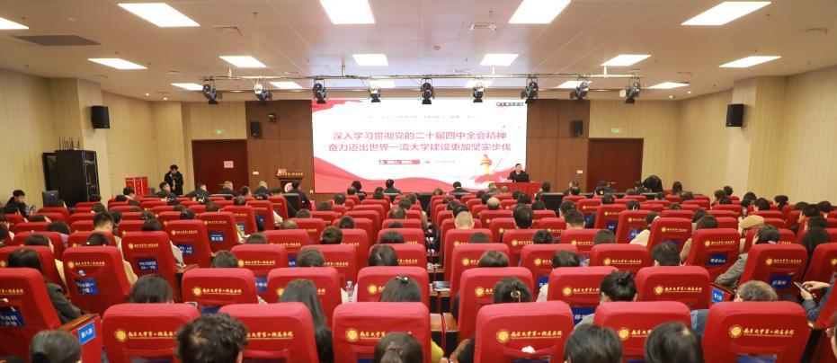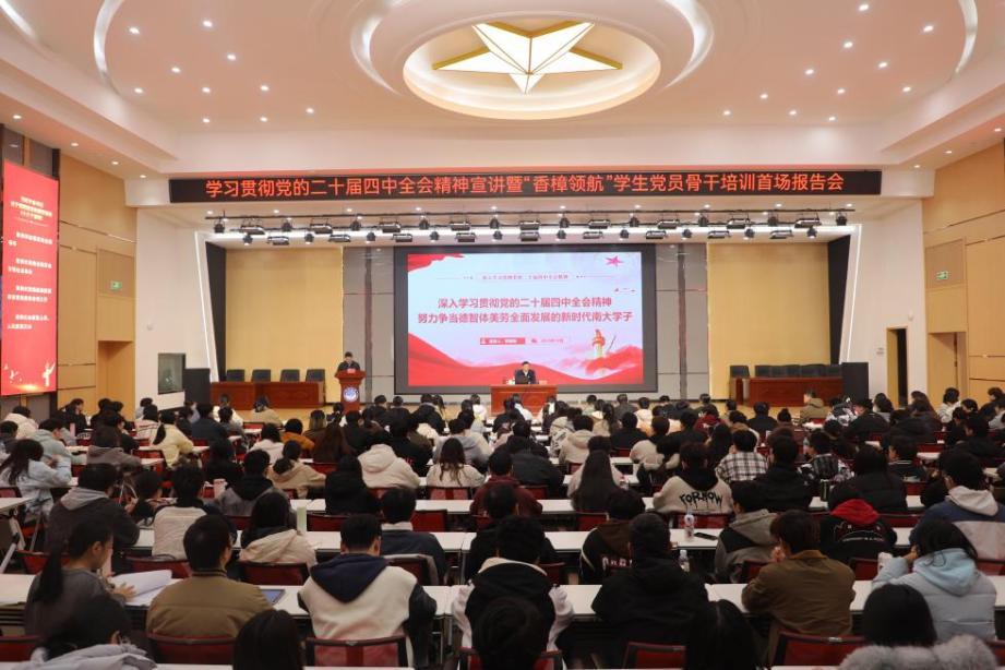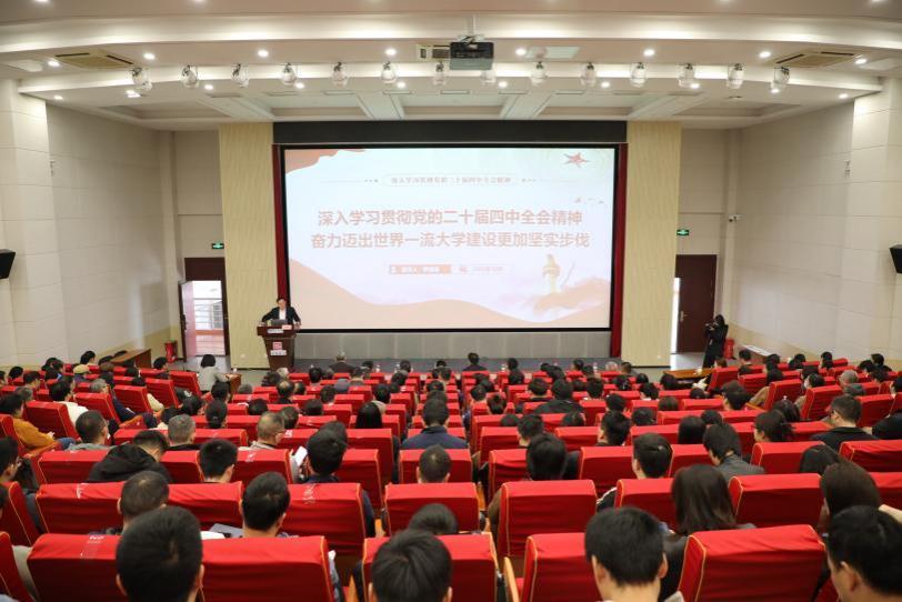 本网讯(南轩)为深入学习贯彻党的二十届四中全会精神,学校精心组织、周密部署、统筹推进,组建校级学习贯彻党的二十届四中全会精神宣讲团,校党委书记罗嗣海等校领导和专家学者作为宣讲员纷纷深入学校各单位,开展全方位、多层次的全会精神宣讲活动,推动全会精神在学校落地生根、开花结果,为学校高质量发展注入强劲思想动力。