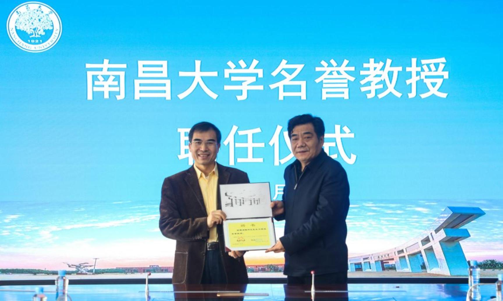 本网讯(人事处)1月21日上午,我校校友、中国科学院院士陈晔光名誉教授聘任仪式在前湖校区举行。校长周创兵代表学校为陈晔光校友颁发了聘书、佩戴了校徽,希望陈晔光校友加盟南昌大学后,积极推动学校“新医科”建设,吸引更多高层次人才加入,打造高端学术交流平台,提升对外学术交流水平和人才培养质量,为推动学校早日迈入世界一流大学建设行列贡献智慧和力量。仪式由副校长刘耀彬主持。