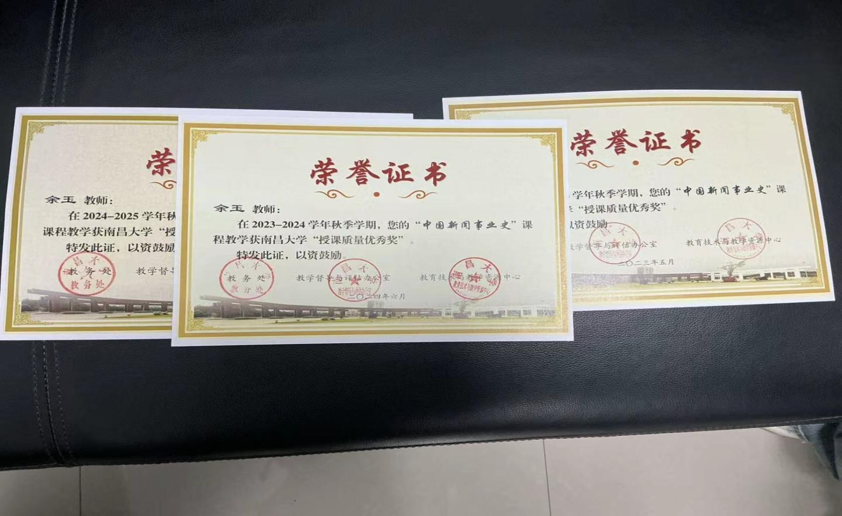 余玉老师的中国新闻事业史课程连续三年斩获优秀奖。学生陈菡雨/摄