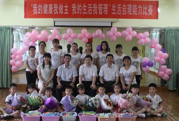 本网讯(记者易有斌)为庆祝第67个“六一”国际儿童节,6月1日下午,学校幼儿园举办了“我的健康我做主,我的生活我管理”生活自理能力比赛等系列活动。校党委书记胡永新、校长助理李鸣一行来到幼儿园,给小朋友送上节日的礼物和祝福,向辛勤工作的幼儿教师们表示诚挚的问候。
