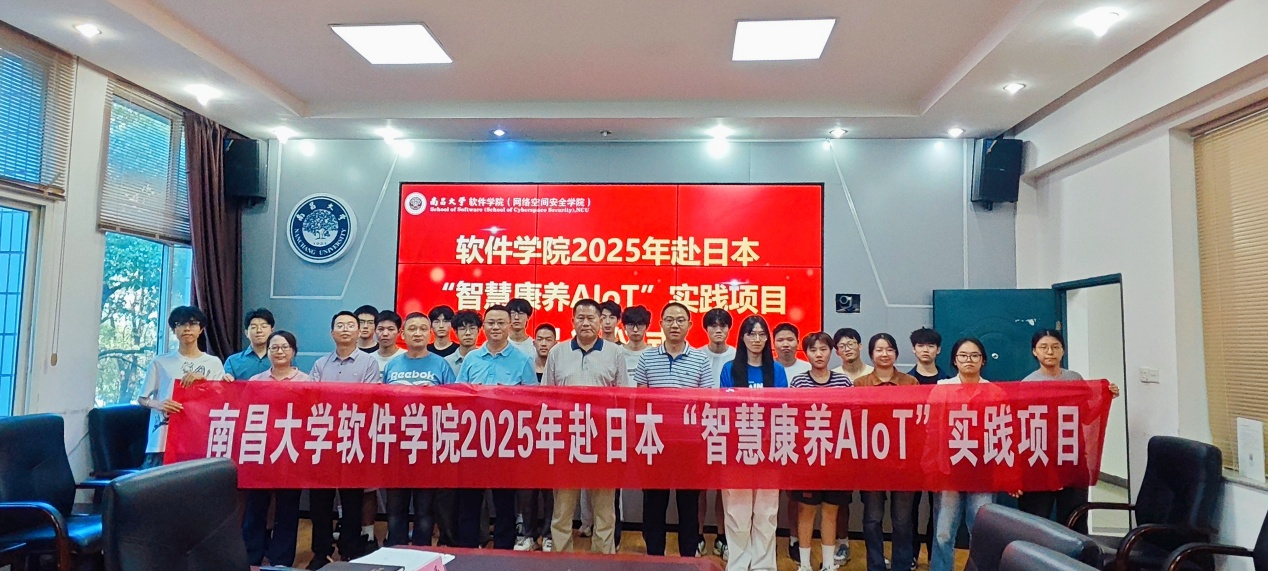 本网讯(邹运英)9月26日,南昌大学软件学院2025年赴日本“智慧康养AIoT”实践项目出征仪式在软件楼222室顺利举行。学院党委书记余克弟、党委委员梅纲出席仪式并致辞,仪式由罗铭副院长主持。