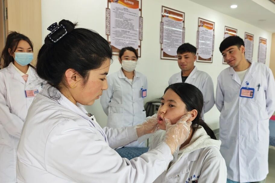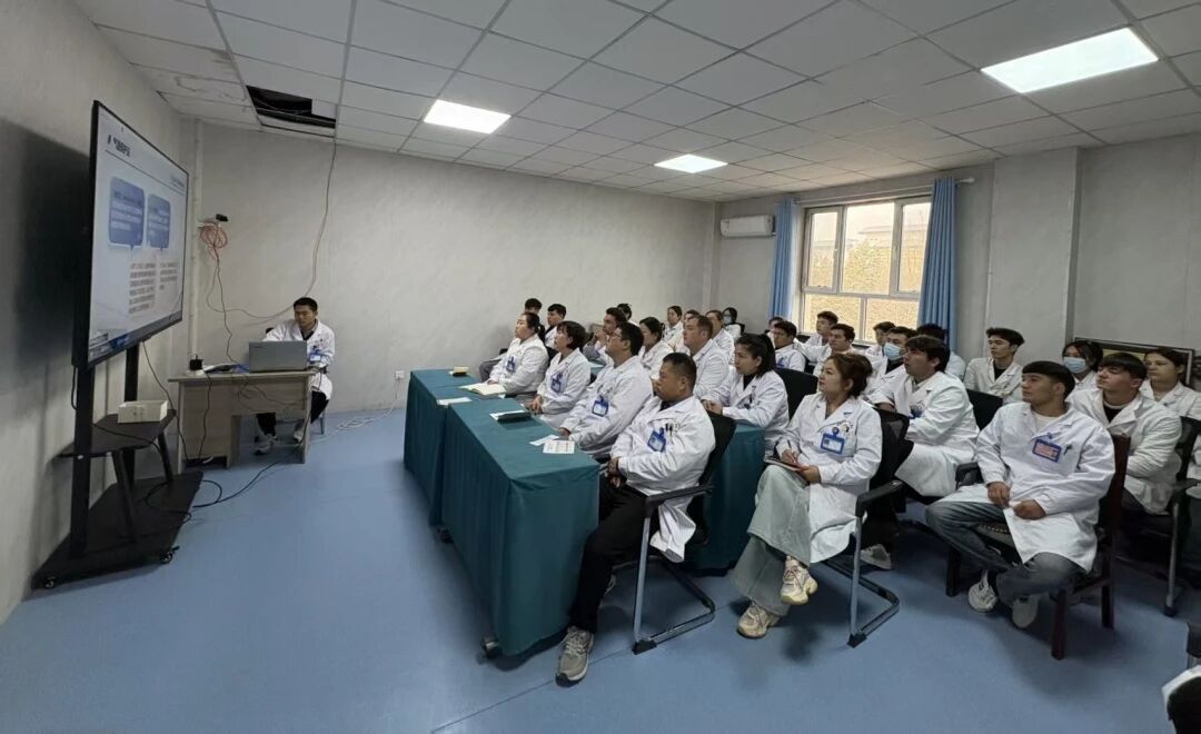 阿克陶县人民医院康复科接诊的脑卒中患者中,合并吞咽及言语功能障碍者占比较高,而相关康复技术尚未系统开展。梁颖深入了解情况后,迅速制定帮扶方案,并依托医院优质专家资源,邀请医院吞咽康复专家喻梦丹老师,共同开展“吞咽康复实操演练教学”,推动理论知识向临床技能有效转化。