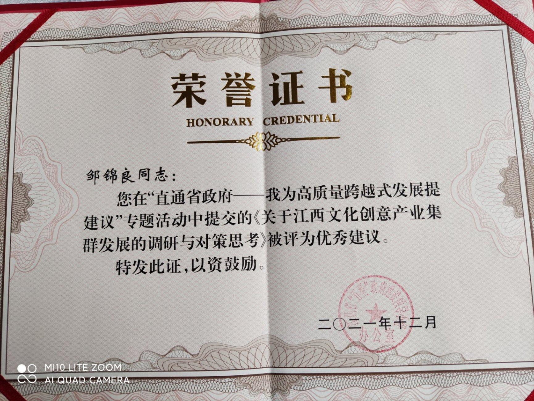 本网讯(党委统战部)近日,农工党南昌大学委员会副主委邹锦良撰写的《关于江西文化创意产业集群发展的调研与对策思考》在江西省政府办公厅举办的“直通省政府——我为高质量跨越式发展提建议”活动中被评为“优秀建议”。