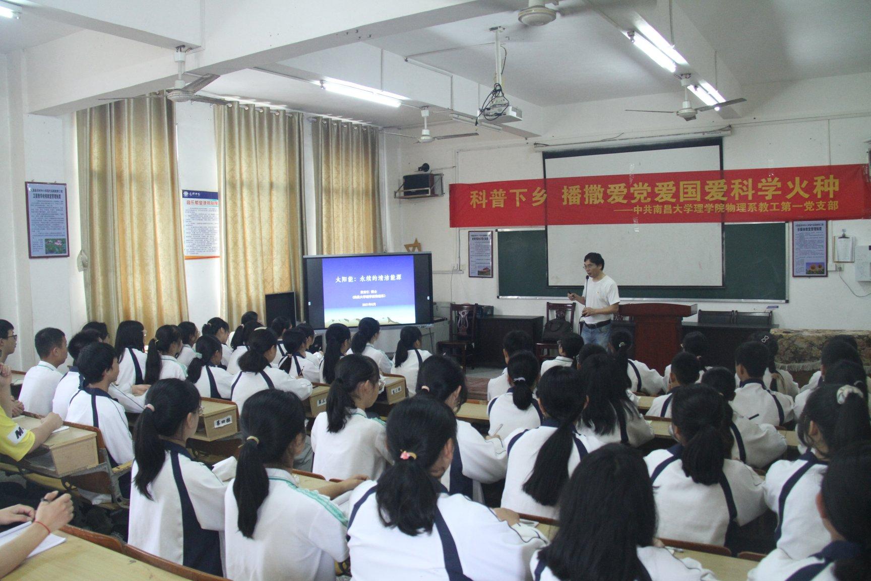 办好实事践行使命,南昌大学理学院师生走进革命老区开展科普宣传本网讯(理学院)播撒科学种子,传承革命精神,服务老区建设。5月27-28日,正值全国科技活动周期间,理学院物理系教工第一党支部成员前往素有“中国烈士第一县”的红色热土——兴国县,开展科普讲座、科普演示、科普体验等形式多样的活动,目的在于普及科学知识,弘扬科学精神,助推科学启蒙。