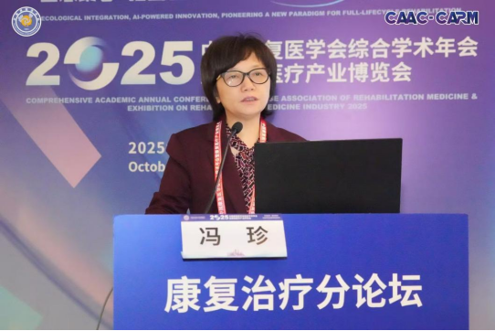 “康复治疗分论坛”上,冯珍发表题为《慢性意识障碍正中神经电刺激技术操作规范》专题主讲,系统介绍了该技术的操作要点与临床应用规范,为行业提供了清晰、实用的技术指引,展现了我校附属康复医院在康复治疗标准化建设方面的引领作用。