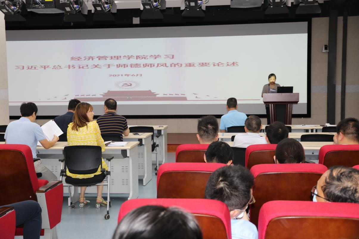 本网讯(经济管理学院)6月10日下午,经济管理学院在智华经管楼618报告厅集中学习习近平总书记关于师德师风的重要论述。经济管理学院全体教职工参加了此次大会。