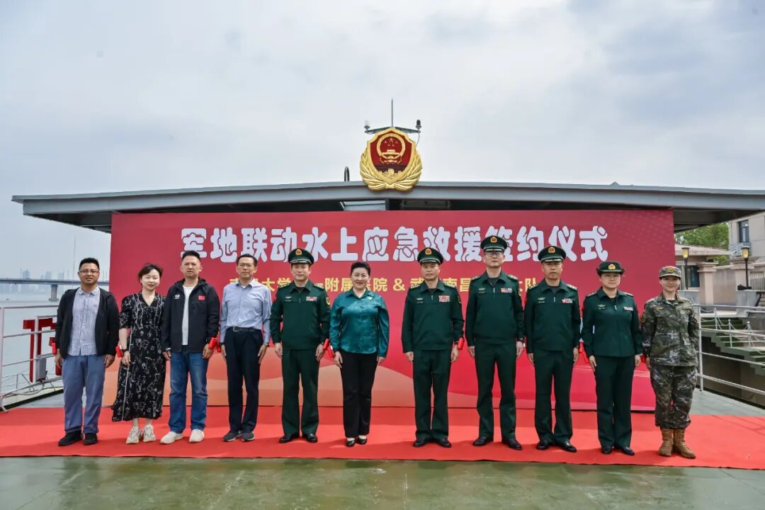本网讯(第一附属医院)近日,武警南昌支队的官兵携手第一附属医院的白衣天使们齐聚船艇分队趸船甲板上共同谋划“大事情”,开展军地联动水上应急救援签约仪式,守护驻地人民生命健康安全,提升水上应急救援能力。