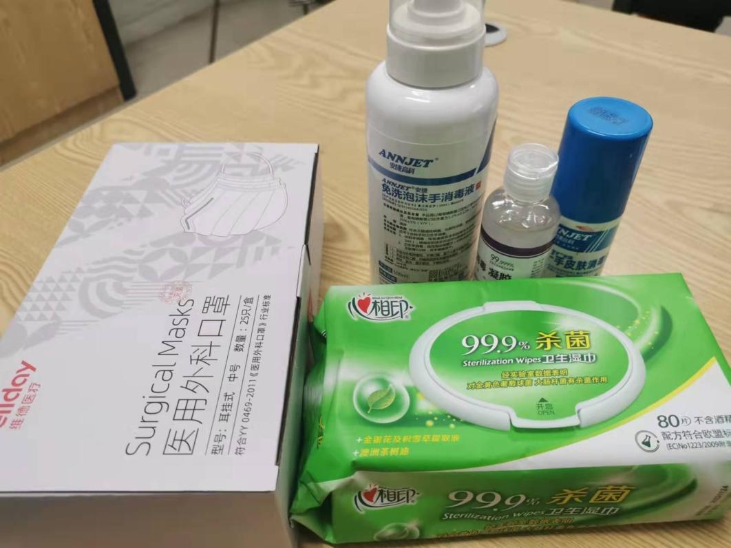 期间,学院行政办公室迅速采购了一批防疫物资,为每位在校教师配备了消毒凝胶、速干消毒液、防护口罩、杀菌湿巾等,为一线教师保驾护航。