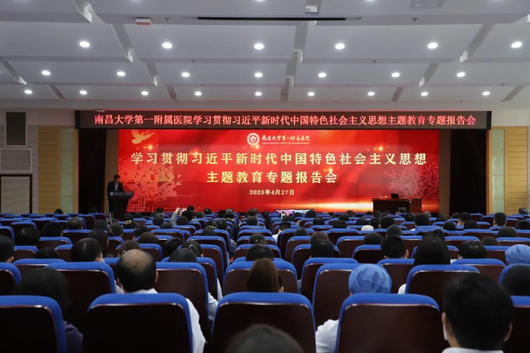 )4月27日,一附院召开学习贯彻习近平新时代中国特色社会主义思想主题教育第二场专题报告会,南昌大学社科处处长、马克思主义学院院长胡伯项教授作专题辅导报告。党委书记谭友文讲话,党委委员邱嘉旋主持,院领导班子成员出席。