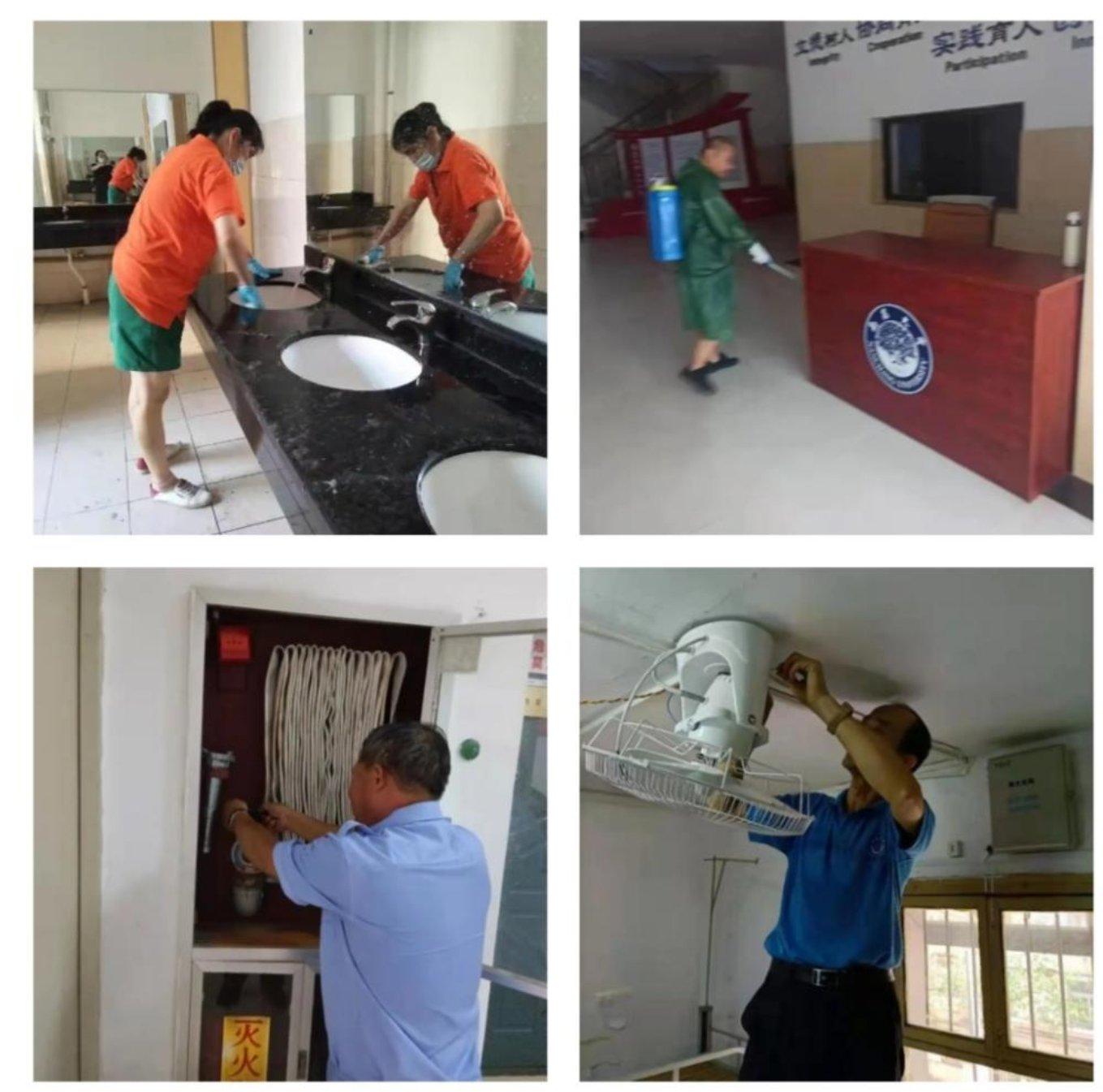 面面俱到,务实保障。三个校区物业中心的工作人员们,在学生们尽享欢乐的暑假期间,不辞辛苦、不怕酷暑。清洁整理校园环境卫生;全面打扫彻底消杀;为师生创造洁净校园。迎新当日的人流中,也随处可见他们的身影:清理垃圾、紧急维修、秩序引导。全力以赴的展开迎新工作,只为让每位学生感受到温暖如家。