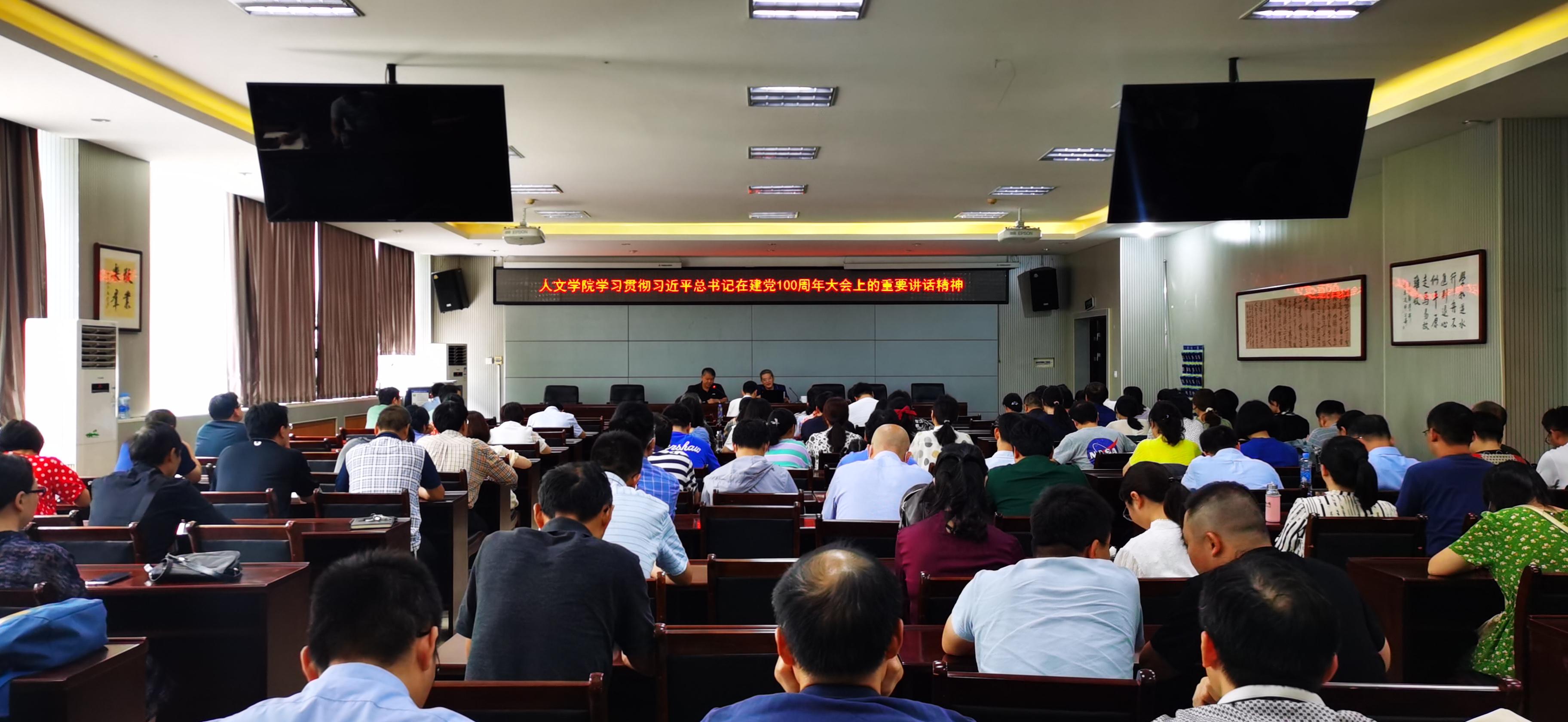 本网讯(人文学院)9月7日下午,人文学院学习贯彻习近平总书记在建党100周年大会上的重要讲话精神专题辅导报告在人文楼B230会议室举行,学院党委书记宋三平作辅导报告,人文学院全体教职工参会学习。