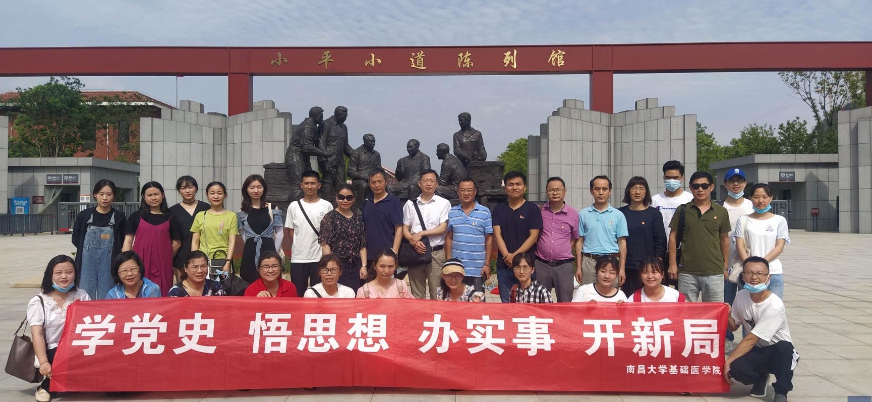 本网讯(基础医学院)为落实学校关于党史学习教育“五个一”工作部署,提高党性修养,传承红色基因,6月16日上午,基础医学院组织30余名师生党员走进小平小道,开展“红色课堂”,追忆伟人故事。