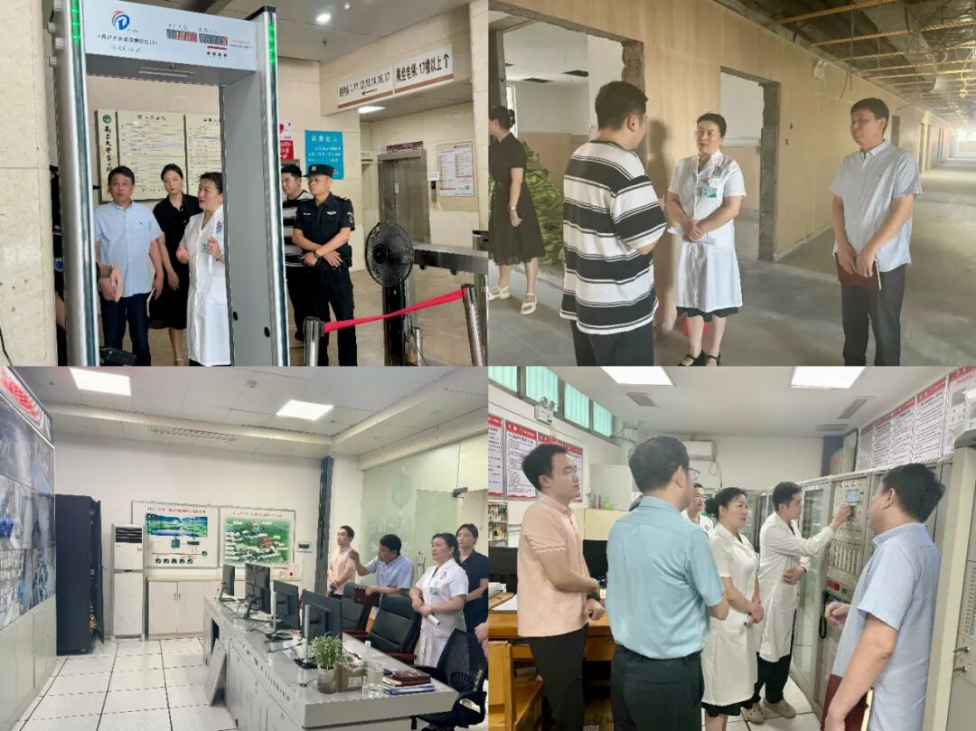 本网讯(第一附属医院)7月30日,党委书记廖岚带队开展消防安全和安防建设工作检查,现场她听取了相关部门就医院安防工作的汇报,并先后前往东湖院区消防控制室、视频监控室、非机动车停车场、主要出入口安检处、外科大楼病房改造现场及普外科病房等地,对医院消防安全及安全防护工作进行检查。党政办、党委宣传部、保卫部等相关职能处室相关负责人陪同。