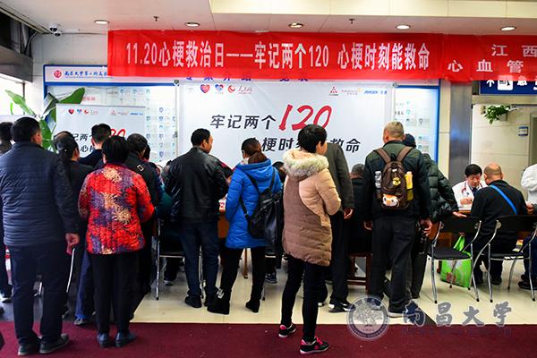 本网讯(第二附属医院)11月20日“心梗救治日”当天上午,由中国科学技术协会、中国医师协会、中国医学救援协会、中华医学会心血管病学分会、中国心血管健康联盟、人民网、我校第二附属医院举办的义诊活动在第二附属医院门诊部拉开帷幕。