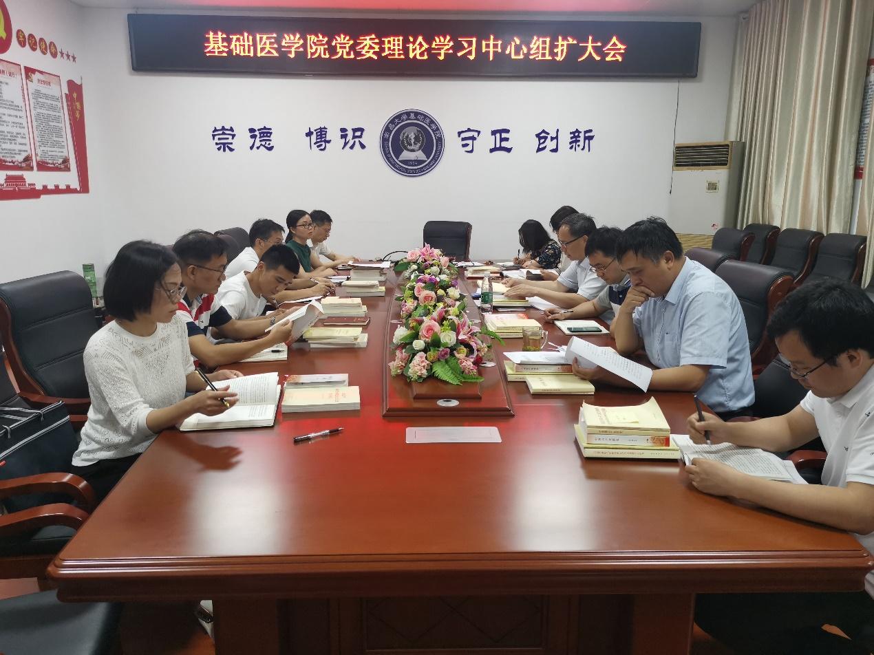 本网讯(基础医学院)为坚持以习近平新时代中国特色社会主义思想为指导,开展好党史学习教育,推动理论学习与中心工作相结合,按照学院党委党史学习教育安排部署要求,6月10日下午,基础医学院党委于学院223会议室开展党委理论学习中心组扩大会。会议主要围绕习近平总书记在两院院士大会、中国科协第十次全国代表大会上的重要讲话精神及习近平总书记在中共中央政治局第三十次集体学习时的重要讲话精神两个部分展开学习,会议由学院党委书记熊文龙同志主持,学院党委委员和各支部书记参加学习。